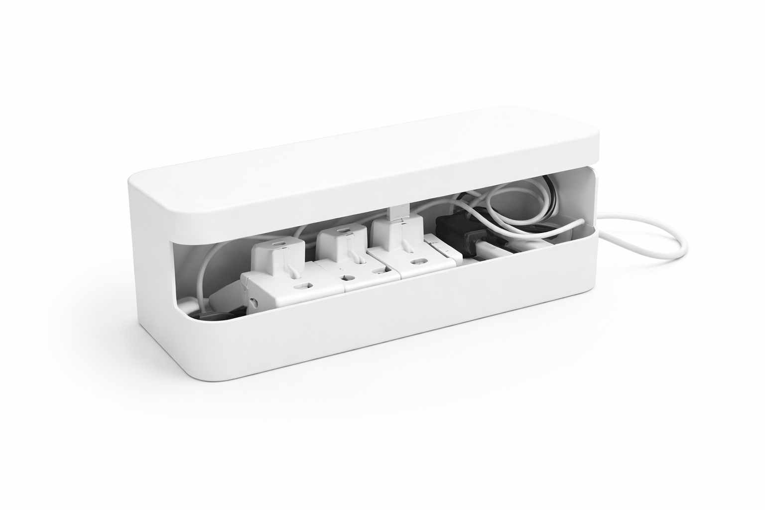 Een praktische kabelopbergbox om stekkerdozen en losse kabels netjes weg te werken. Draagt bij aan een opgeruimde en georganiseerde werkruimte.